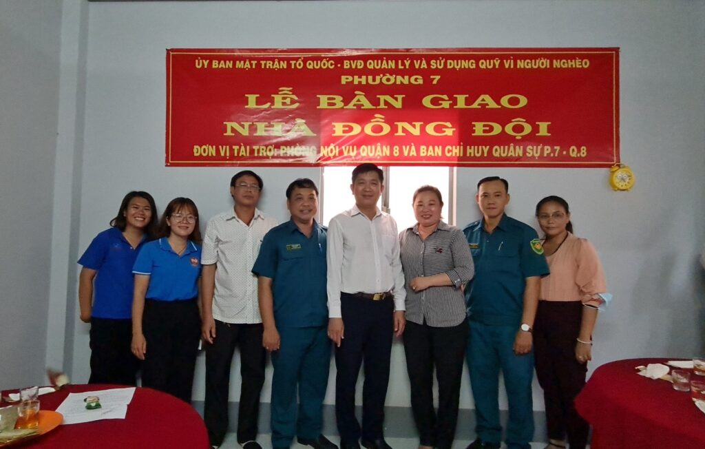 Hướng tới kỷ niệm 75 năm ngày Thương binh – Liệt sĩ (27/7/1947 – 27/7/2022), chiều ngày 24/6/2022 Chi bộ Phòng Nội vụ (Quận 8, TP.HCM) đã phối hợp với Ủy ban Mặt trận Tổ quốc Việt Nam Phường 7 – Ban Chỉ huy Quân sự Phường 7 tổ chức Lễ trao tặng căn Nhà đồng đội (Nhà tình thương), nhằm thiết thực tổ chức các hoạt động công tác chăm lo chính sách hậu phương quân đội cho gia đình có 4 người con tham gia nghĩa vụ quân sự có hoàn cảnh khó khăn trên địa bàn Phường 7. Đây cũng là công trình của Chi bộ Phòng Nội vụ đăng ký thực hiện Học tập và làm theo tư tưởng, đạo đức, phong cách Hồ Chí Minh năm 2022; đồng thời cũng là công trình thiết thực chào mừng Đại hội Chi bộ Phòng Nội vụ lần thứ VI nhiệm kỳ 2022 – 2025, dự kiến tổ chức vào cuối tháng 7/2022.